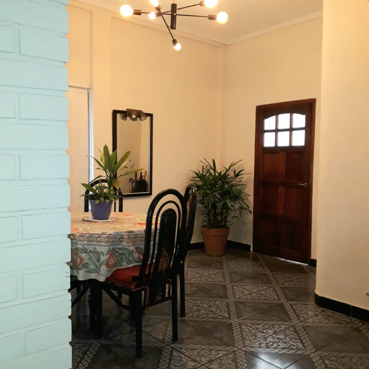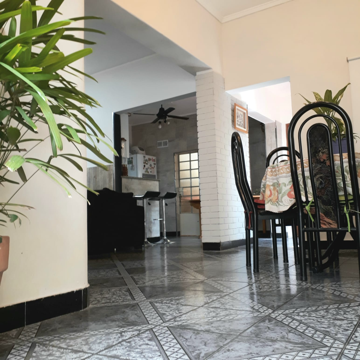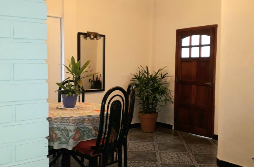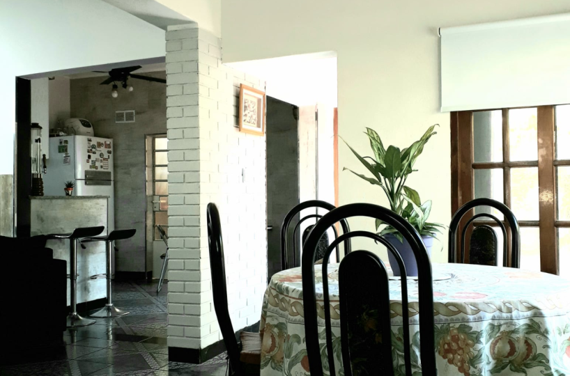 El mismo posee dos plantas. En la planta baja se ingresa al living-comedor a través de un pequeño patio y posee cocina comedor con lavadero aparte y, otro patio en la parte de atrás. A su vez, en la planta baja hay un dormitorio grande y un baño. Se accede al primer piso por escalera y allí se encuentra un dormitorio de unos 20 m4 aproximadamente y la terraza de la propiedad.