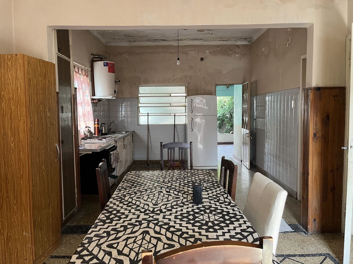 Se ingresa a la propiedad por el living-comedor con la cocina a continuación, por la que se sale al patio semi-cubierto. El patio cuenta con baño y lavadero.