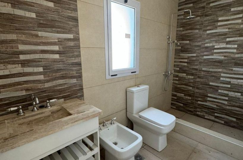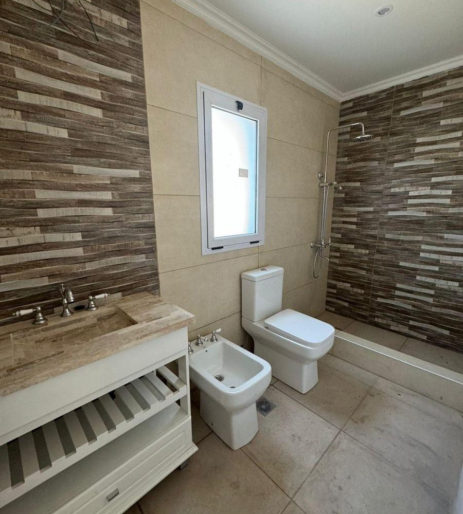El living-comedor es amplio, con baño completo, cocina integrada con una hermosa isla y vista al patio a traves de un amplio ventanal. El patio cuenta con parrilla, baño en el exterior y piscina. La propiedad cuenta con instalaciones para aire acondicionado.
